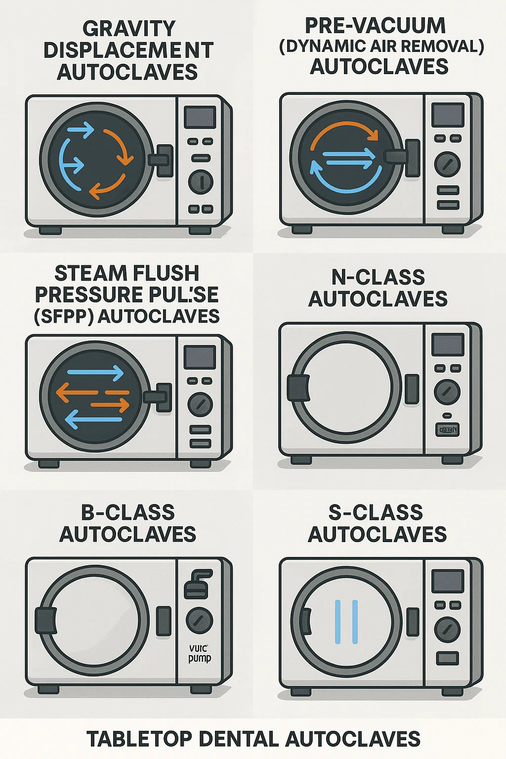 Berikut adalah jenis utama Autoklaf Gigi Tabletop :